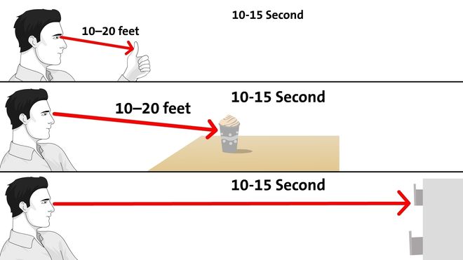 Để luyện tập theo phương pháp này thì cứ sau 20 phút, hãy phóng tầm mắt của mình ra 20 feet (tầm 6m) trong thời gian 20 giây.