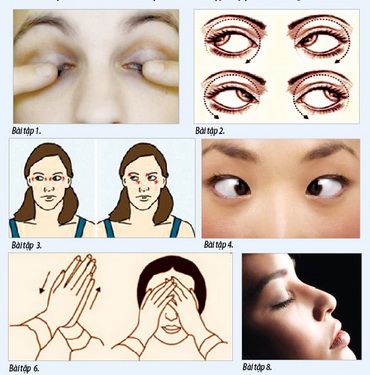 Đầu tiên, đảo mắt chậm rãi sang bên trái thành một vòng tròn từ 5 đến 10 lần; sau đó lại đảo mắt chậm rãi sang bên phải từ 5 đến 10 lần nữa để kết thúc bài tập.